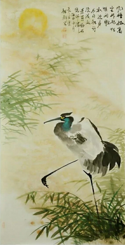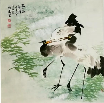 作品巜和谐》、巜鹭遇春发生》、巜鹭鸣清翠》等,为我们呈现出纯净唯美的白鹭形象。这些画面,让我们惊叹沉醉,让我们的心灵受到净化和安顿。翩翩飞鹭真吾友,肯与幽人一再来。我们观赏这类画作,好像白鹭似我,我为白鹭,使人达到物我同一、物我两忘的欣赏境界。 白鹭不仅是美丽的化身,梁雅静还从中国古典诗文中挖掘白鹭的人文意义。