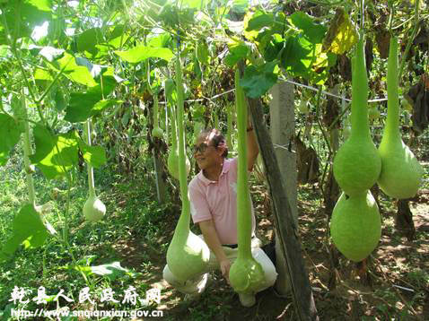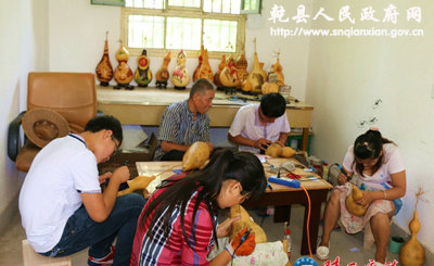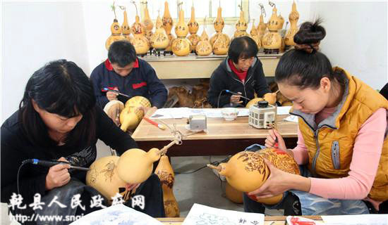 我县薛录镇盘州村盘龙传统工艺美术公司,就通过种植葫芦、雕刻葫芦工艺品发展经济,增加当地群众收入的。
