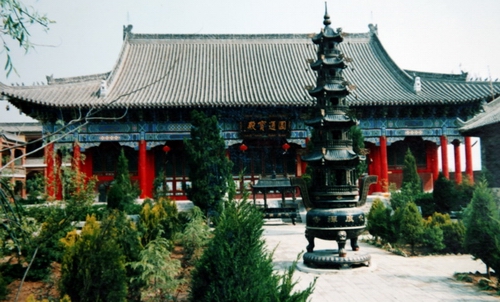 圆通法师主持化度寺以来,为恢复古刹原貌,重现当年的盛况,圆通法师四处奔波,广结善缘,于1993年10月赴新加坡等国讲经说法,宣扬党的宗教信仰自由政策,先后成功从国外募化资金900万余元,建成西北第一大仿清建筑的圆通宝殿、五间两层藏经楼、三圣殿、天王殿、玉佛殿、山门及东西配房等,并礼请回一口世纪仿古铜钟和6.8米高的世纪宝鼎,一举改变了“昔日老庙破僧房,门前蒿草长过墙,风中欲灭残烛泪,飞雀收趐落殿堂”的破败旧貌。新建的山门庄严肃穆,楼阁飞檐重叠,殿堂雕梁画栋,佛像贴金披彩,气势恢弘,环境清幽,香火缭绕,晨钟暮鼓,不绝于耳,使这方千年佛教圣地重现光彩,成为广大信众旅游观光、进香礼佛的一大人文景观。
