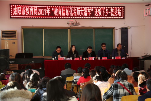 12月4日至5日,咸阳市教育局2017年“教育信息化名师大篷车”到乾县开展送教活动。市电教馆副馆长郭锐带队,省级教育信息化专家邵钧铭、董建利两位老师主讲,对乾县60名教师、电教工作者进行了信息化素养和电脑制作专题培训。县政府教育副总督学刘小龙、教育局电教中心全体同志参加了活动。