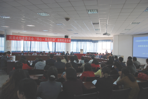 4月17日下午,民盟咸阳市委“同心烛光行动”送教活动走进乾县第一中学。民盟陕西省委员会社会服务部部长白玉,咸阳市政协副主席、民盟咸阳市委员会主委王巧萍等盟市委负责人、咸阳市教育局师资科科长来志宏,副县长张小宁、政协副主席张静妮等参加活动。