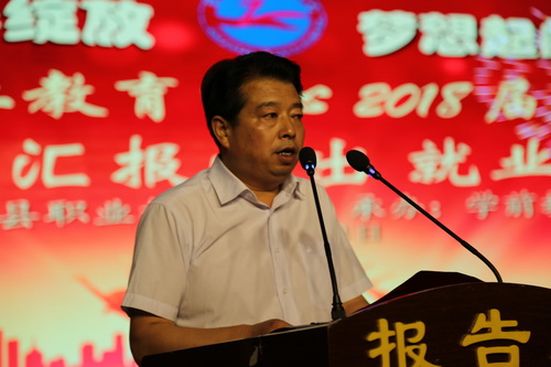 教育局党委书记、局长席俊昭发表致辞,对参会嘉宾表示热烈的欢迎,肯定了县职教中心在教育教学方面取得的成绩,并祝愿全体毕业生努力奋斗,成就幸福美好的未来。校长何战会介绍学校的基本情况,毕业生代表在毕业感言中满怀深情地表达对学前教育专业的热爱,对老师辛勤培育的感激,对母校的深深眷恋。