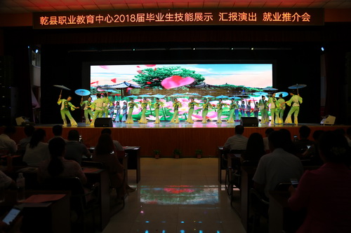 麦浪翻滚说丰年,听取歌声一片。在这收获的季节里,在这毕业的日子里, 6月4日上午,乾县职教中心2018届学前教育专业毕业汇报演出在学校演播大厅隆重举行。教育局全体领导出席活动,受邀的幼儿园负责人和企业嘉宾、毕业生家长、部分学生观看了演出。