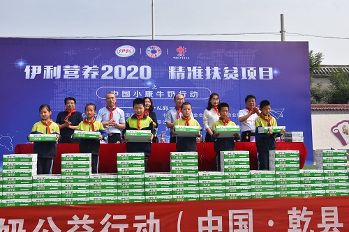 捐赠仪式上,六名少先队员代表学校接受学生营养奶捐赠。教育局主要负责人致答谢辞,感谢中国红十字基金会和伊利集团对乾县教育的支持的关心,并向伊利集团赠送锦旗一面。伊利集团陕西分公司负责人作发言。