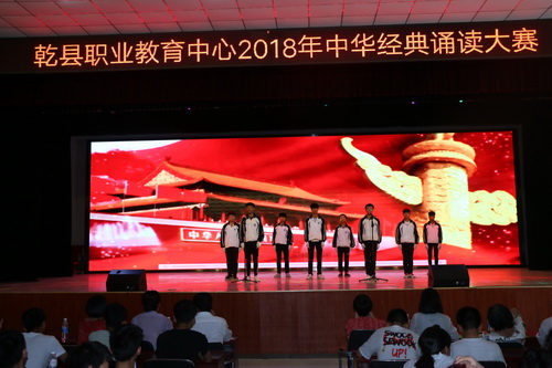 为贯彻落实党的十九大精神,纪念中国改革开放40周年,传承弘扬中华优秀传统文化,培养师生良好的阅读习惯,提高师生的人文素养,进一步深化校园文化建设。6月6日下午,乾县职教中心2018年“中国梦?爱国情?成才志”中华经典诵读比赛在校演播大厅举行。