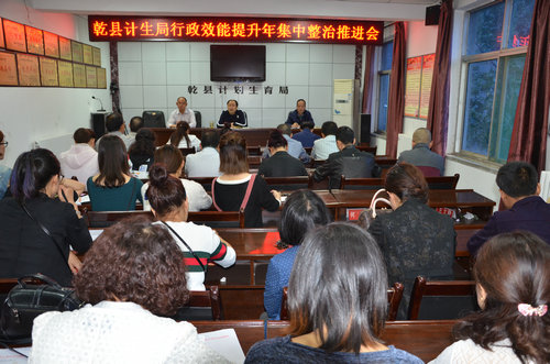 8月29日上午,乾县人口计生局召开政府行政效能提升年集中整治推进会。全体县级计生系统党员干部职工参加学习推进会,县计生局党组书记、局长王显亮主持推进会。