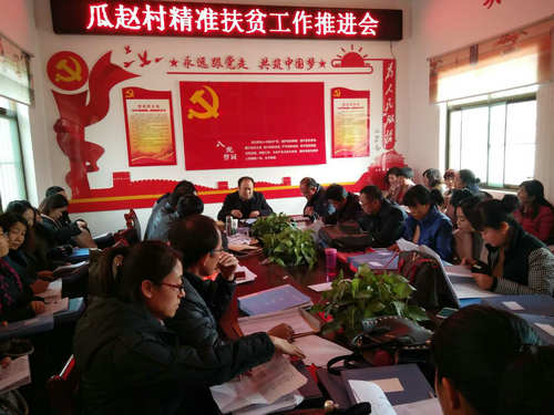 11月28日,计生局驻瓜赵村临时党支部组织“四支力量”和精准扶贫所有包抓责任人会议,学习传达市委书记岳亮在脱贫攻坚冬季行动推进视频会上的讲话,要求各责任人要补短板,造亮点,转作风。会议安排精准扶贫基础资料评比活动,进一步推进资料管理的科学化、规范化水平,强力推进精准脱贫工作。