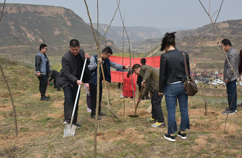 3月25日上午,乾县宝丰合作社第三届义务植树活动及中国自贸区大秦文学院宝丰创作基地揭牌仪式在阳洪镇陆陌沟举行。阳洪中学部分校友、大秦文学院部分成员,乾县部分党政机关干部、企业员工,以及周边村庄的群众共计千余名志愿者来到陆陌沟,参加义务植树活动及创作基地揭牌仪式。