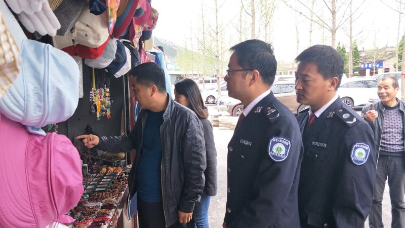 随后执法人员来到乾陵景区“百工坊”艺术品市场,对40多家商户逐一检查。针对个别手续不齐全的商户,执法人员当场责令其停止违法经营行为,并限期整改。