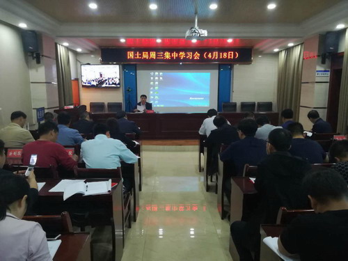 4月18日晚7点,县国土局召开集中学习会,会上由局负责人领学《关于新形势下党内生活若干准则》等文件精神,国土系统全体干部职工120余人参加学习。