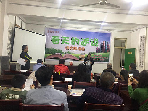 4月23日是世界读书日,为倡导我县全民阅读活动的深入开展,提升全民阅读意识,乾县文化馆、陕西省散文学会乾县创作基地、“乾陵文苑”编辑部在23日下午联合举办“春天的述说”世界读书日诗文朗诵会,我县文学爱好者、朗诵爱好者近45人参加了此次诗文朗诵活动。