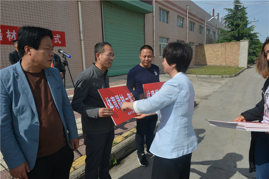 副县长张小宁在发放仪式上要求:各镇、村要在各级各类健身工程逐步完善的基础上,加大推进农村体育协会和体育活动站(点)建设,努力培养以社会体育指导员为主体的农村体育骨干队伍,引导更多的农民群众投身到体育健身活动中来,切实发挥体育在社会主义新农村建设中的积极作用。要以这次器材配发为新的起点,大力弘扬体育精神,精心组织开展各类体育活动,动员和吸引更多的群众参与到体育运动中来,充分体现“我运动、我健身、我快乐”的健身运动理念,以良好的精神状态努力开创我县全民健身工作新局面。