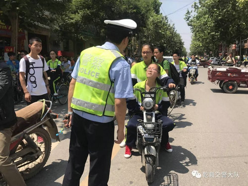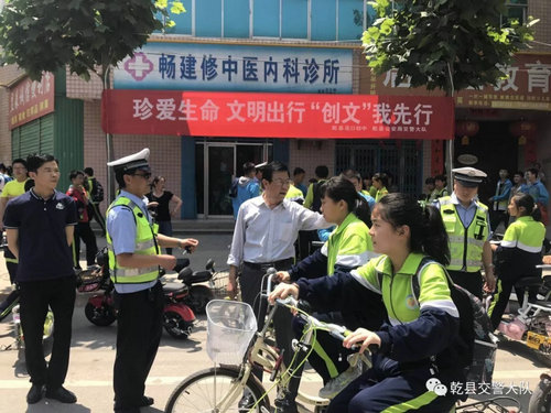 5月15日中午,乾县交警大队法宣科、城区中队联合花口初中相关安全负责人开展以“珍爱生命文明出行‘创文’我先行”为主题的交通安全劝导教育活动。