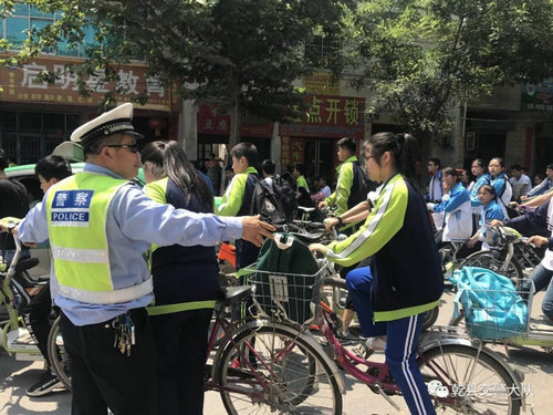 学生放学期间,民警在十字路口与校方联合组织开展文明交通劝导活动,针对学生闯红灯、随意横穿道路及未满16岁骑电动车(包括超员)等交通违法行为进行现场教育并对存在交通违法行为的学生进行登记,民警对其进行普法教育,进一步提高他们的安全意识和遵章守法意识。