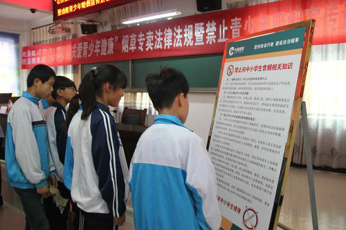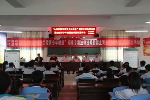 本次活动在县杨汉初中和长义中学举行,共有300余名师生参加。活动以宣传展板展示、劝阻青少年吸烟资料发放及烟草专卖法律知识讲座等形式开展,重点介绍了我国烟草专卖制度,烟草专卖法的立法目的意义,禁止青少年吸烟的法律规定,青少年吸食香烟的危害,禁止卷烟零售店向中小学生售烟的相关法律规定等内容,受到了参加活动师生的一致好评。