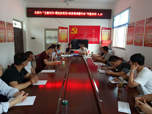 5月29日,乾县人社局在新阳镇化家村召开“主题党日+固定扶贫日+扶贫领域警示”会,人社局机关帮扶干部、村干部及第一书记、县公路站帮扶干部30余人参会。