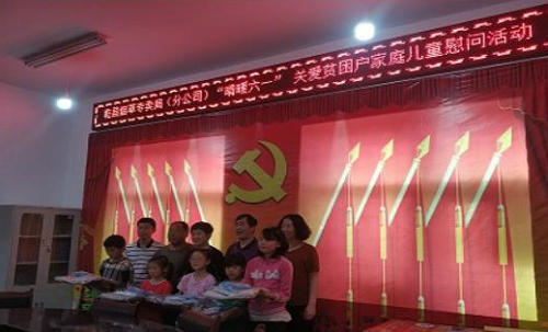 “六一”儿童节来临之际,为了让贫困户家庭儿童过一个快乐的节日。5月29日,乾县烟草专卖局(分公司)党组成员来到乾县临平镇寒寨村慰问贫困户家庭儿童。为他们赠送书包、文具等学习用品,向他们致以节日的祝福,并详细了解贫困家庭儿童的学习和生活情况,给予他们精神上的关怀,让他们感受到“社会大家庭”的温暖,勉励他们要好好读书,努力学习,长大成才,早日成为国家栋梁之才。