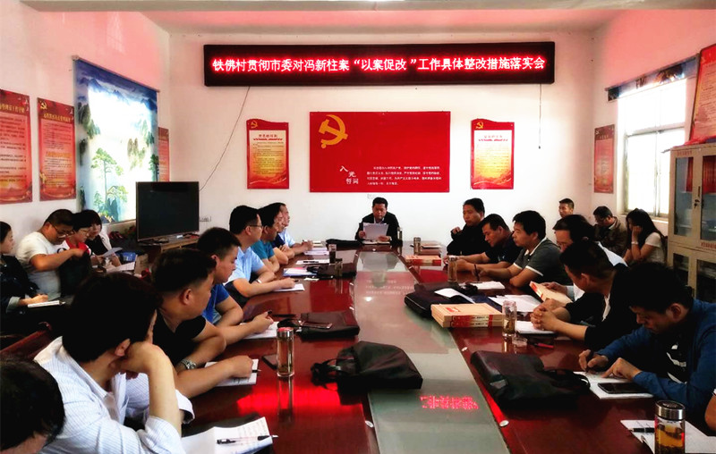 6月9日上午,财政局铁佛村临时党支部召开冯新柱案“以案促改”工作具体整改措施落实会,铁佛村精准扶贫四支力量参加会议。