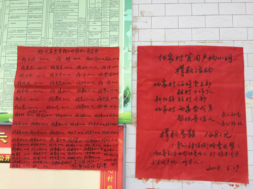 化家村帮扶户杨小明2015年被认定为贫困户,身患疾病,孤苦无依,39岁的他只要一干重活儿就会鼻孔出血,因病致贫。乾县人社局先后为其出资搭建活动板房两间,送去床、被褥等帮扶物资,捐献资金7500余元。杨小明吃药不能间断,断断续续在住院治疗,早已花光了所有积蓄。今年3月底和6月中旬在县中医医院住院治疗,化家村村民得知情况后,由村干部牵头为其募捐了3674元。