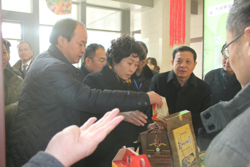陕西省供销合作总社主任陈纯山、咸阳市市长卫华、副市长李晓静等领导来到我县展台查看参展情况,副县长苟晓瑜及县供销社、农业局、果业局、工商局等单位负责人在展台前宣传推介我县的农特产品。
