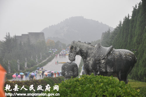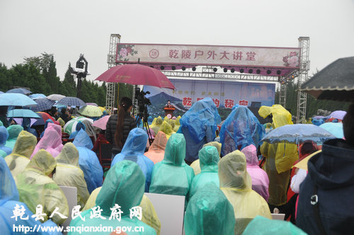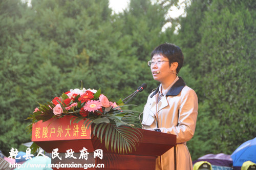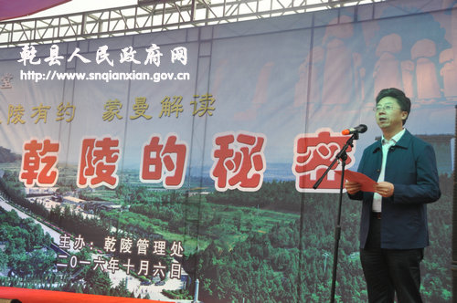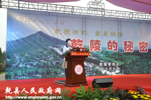 10月6日上午,乾陵神道上人头攒动,水泄不通。蒙曼现场开讲《乾陵里的秘密》,解密乾陵里的大唐盛世。乾县县长谢军致欢迎辞,咸阳市文物旅游局局长杜俊霞,市委宣传部副部长郭群星以及张和平、魏志诚、师虎等乾县领导及广大旅客、观众一起聆听了讲座。