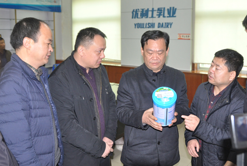 优利士乳业以生产优质羊奶粉为主,二期10万吨羊奶粉生产线项目于今年3月份开工,目前正在安装设备。在优利士乳业,杜润民一行走进产品展厅,查看羊奶粉产品,了解企业年产值及利税贡献,产品销售价格和销量,鲜奶来源以及二期10万吨羊奶粉生产线项目建设情况。杜润民要求企业一定要严把产品质量关,以安全、优质的产品赢得市场;同时要加快二期项目设备安装步伐,争取尽快投入生产。了解到企业计划发展20万头奶山羊养殖的情况后,杜润民建议企业要尽可能地带动周边群众共同发展养殖,实现企业发展、群众致富的双赢目标。