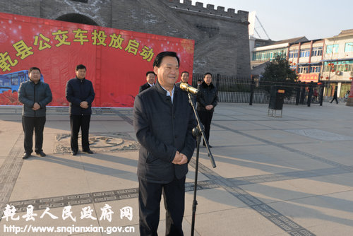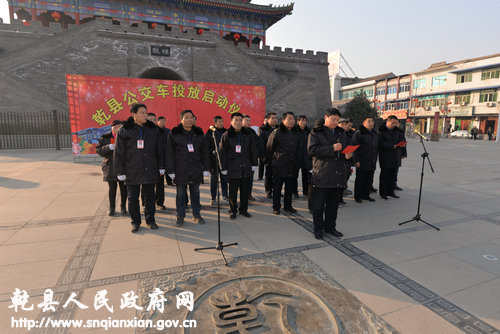 1月23日上午,乾县在第一人民广场举行公交车投放启动仪式,县委书记杜润民宣布发车令,县长焦志鹏主持启动仪式,县人大主任张社教、县政协主席巨振宏,县委常委、统战部长师虎,副县长、公安局长张继荣参加启动仪式并乘车体验。