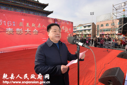 2月10日上午,2016年度"最美乾县人"和"首届文明家庭"表彰大会在县人民广场隆重举行。县委书记杜润民在会上作重要讲话,市委宣传部副部长、市文明办主任徐国健出席会议,县委副书记、县长焦志鹏主持会议,县人大主任张社教、政协主席巨振宏等在家的县级领导,县文明委各副主任,各镇办党(工)委书记,相关单位负责人和干部职工及部分群众参加了表彰大会。