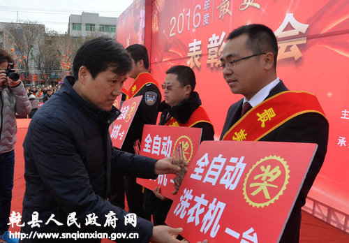 随后,杜润民、徐国健、张社教、巨振宏等为"最美乾县人"、先进集体和"文明家庭"颁发获奖证书及奖品。
