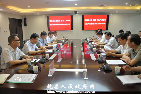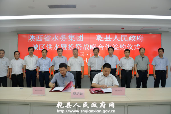 省水务集团董事长王瑜、乾县县委书记杜润民、省水务集团副总经理焦凤雄先后在仪式上致辞,咸阳市水利局局长康秉陆、省水务集团纪委书记王高强、县人大主任张社教、县政协主席巨振宏等领导出席并见证签约,县长焦志鹏与省水务集团董事长王瑜共同签署《城区供水合作协议书》、《投资战略合作协议》,副县长张满池介绍乾县城区供水情况,水务集团副总经理杨博主持仪式。