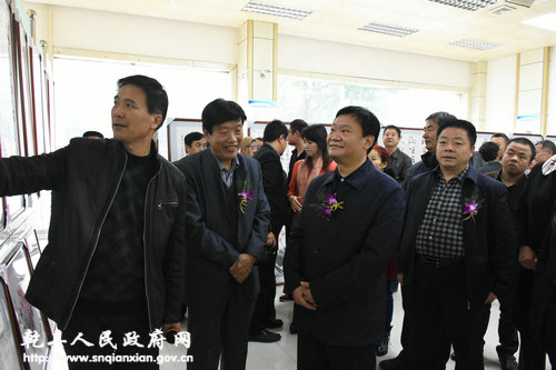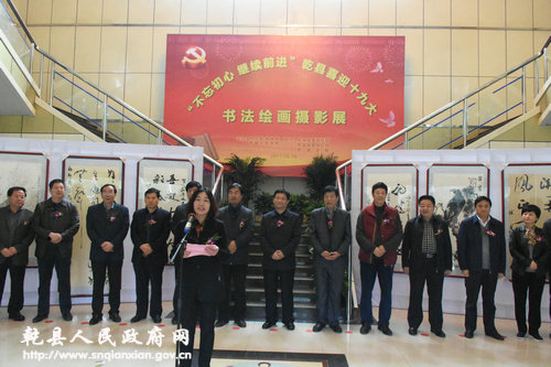 10月16日上午,由乾县县委、bet20365网址主办,乾县县委宣传部、组织部、文联承办的“不忘初心 继续前进”喜迎十九大书画绘画摄影展在县政务大厅隆重举行。咸阳市文联党组书记贾黎明,县委书记杜润民,县人大主任张社教,县长焦志鹏,县政协主席巨振宏,陕西省书协副主席、咸阳市书协主席邓宇春等参观了书法绘画摄影作品展。