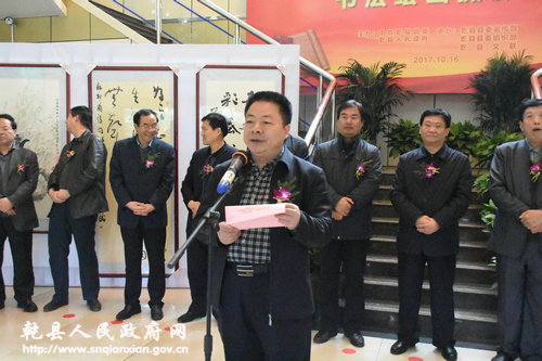 焦志鹏在致辞中说:这次书画摄影展的成功举办,对于弘扬中华民族优秀传统文化,展示干部群众昂扬向上、奋发有为的精神风貌和创新实践,进一步扩大乾县对外影响力,提升对外形象,促进文化艺术的大繁荣与大发展,必将起到积极的促进作用。