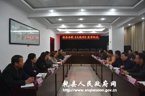 10月24日上午,县委常委、宣传部部长唐彩霞主持召开乾县县歌《大乾州》发布仪式,国家一级作曲、著名指挥夏正华,原县志办主任袁富民、县文化馆馆长齐旭峰以及县委办、人大办、 政府办、 政协办、组织部、教育局、老干局、信息中心、文联、卫计局、文物旅游局、广电台、科协、文明办等单位负责人、宣传部全体班子人员参加发布仪式。