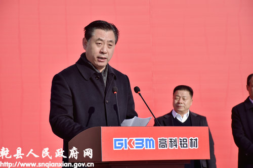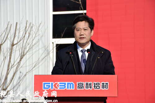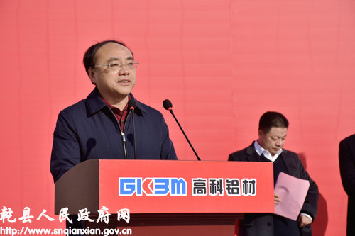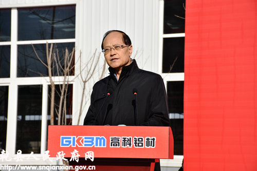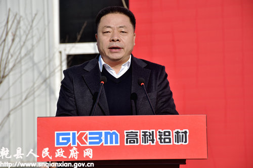 杜润民在致辞中对铝型材生产基地投产表示祝贺,对长期以来关心支持乾县发展的省市领导和各界朋友表示感谢。今天投产的高科铝型材项目对于优化我县工业经济结构,增加地方财政收入,促进劳动力就业,增强我县经济发展实力具有十分重要的意义。