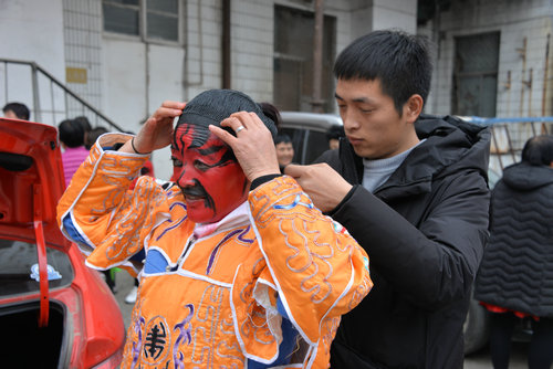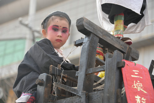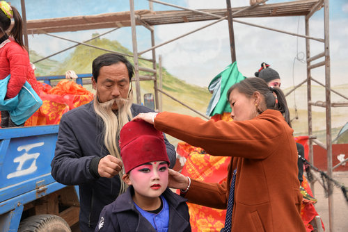 当天一大早,中巷村近千名参演群众就早早赶往县城的集结点,忙碌起来。上妆、绑芯子、大家忙得不亦乐乎,准备粉墨登场。