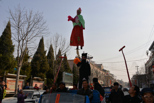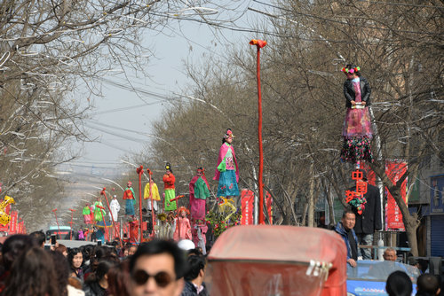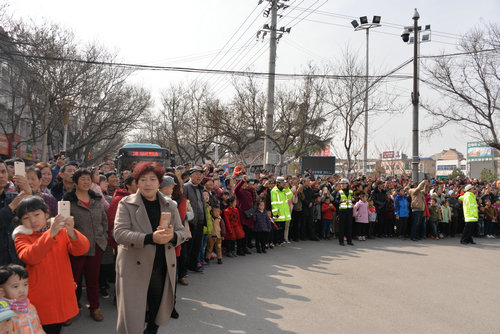 东新街、东环路、顺太街、风水台街、桥西街、北大街......所到之处,路两边被围的水泄不通。人山人海里,观众们踮着脚尖、伸长脖子看表演。
