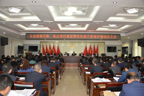3月15日上午,全县招商引资、重点项目建设暨优化提升营商环境动员大会召开。县委书记杜润民在会上讲话,县长焦志鹏主持会议,县人大主任张社教、县政协主席巨振宏等全体在家的县级领导,各镇办党政负责人,县级各部门负责人参加会议。