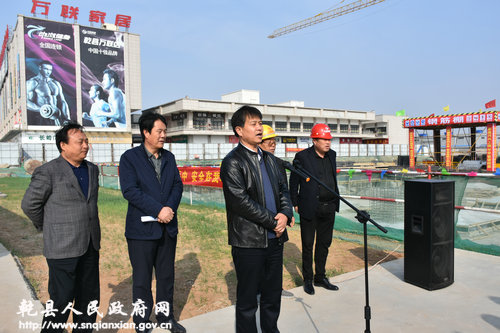 3月16日上午,乾县万联家居建材博览中心二期项目开工建设,县人大副主任刘小纲宣布开工令。