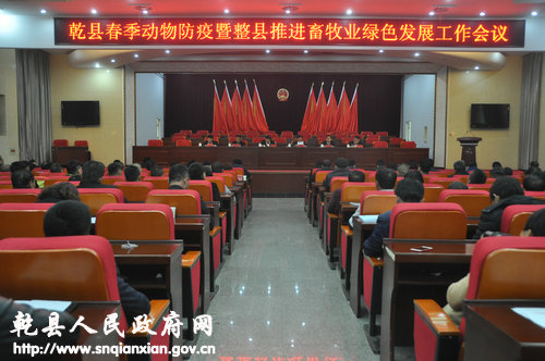 3月19日下午,乾县召开春季动物防疫暨整县推进畜牧业绿色发展工作会。副县长张满池在会上讲话,政府办、县农牧局、疫控中心、动卫所、奶源办全体同志、各镇办主管领导、畜牧兽医站工作人员、全县畜禽养殖场负责人参加会议。