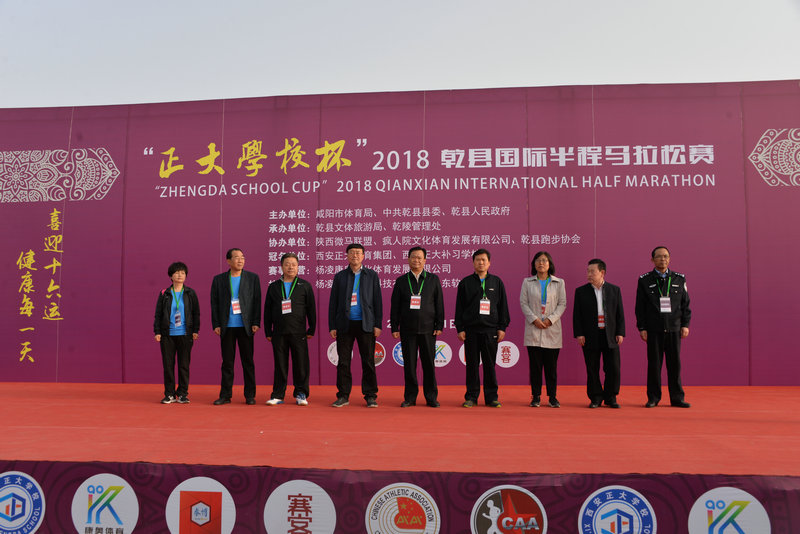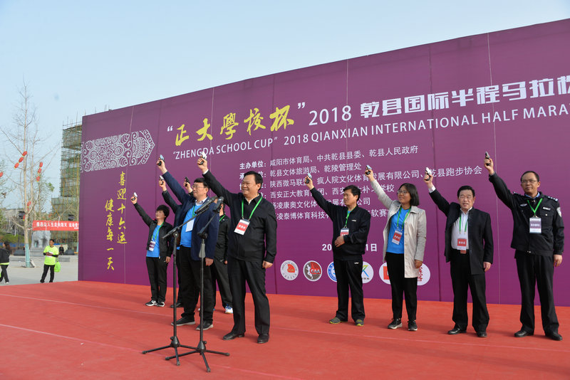 四月的乾州,花开正好,绿意遍野。4月1日上午8时整,随着乾县县委书记杜润民、咸阳市体育局局长贾东林等领导的一声枪响,“正大学校杯”2018乾县首届国际半程马拉松赛正式开赛,来自肯尼亚、埃塞俄比亚、美国等7个国家32名外籍运动员和北京、甘肃、山东、云南等32个省市自治区的近5000名跑步爱好者从大唐小镇的乾坤广场出发,在奔跑中感受乾陵景区的魅力。