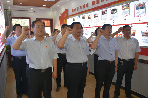 在市级标准化建设示范村周城镇董城村党群服务中心,与会人员还共同进行了党性体验,面对鲜红的党旗重温入党誓词。