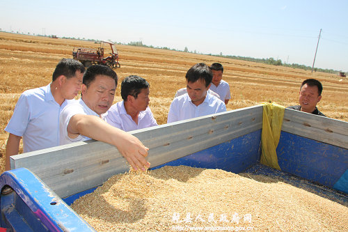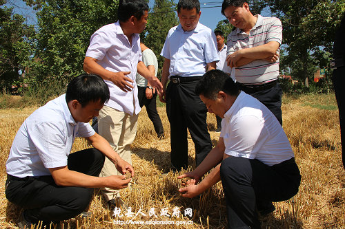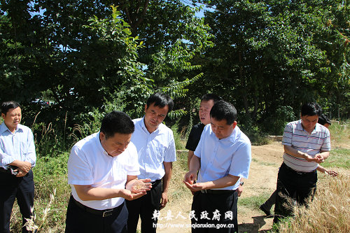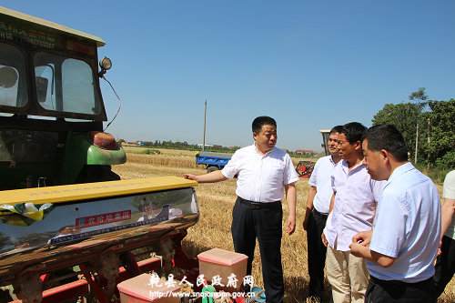 6月5日上午,县长焦志鹏,副县长张满池带领政府办、农牧局、水利局、城关街办负责人到城关街办巨洲村、夹道村检查指导三夏工作。
