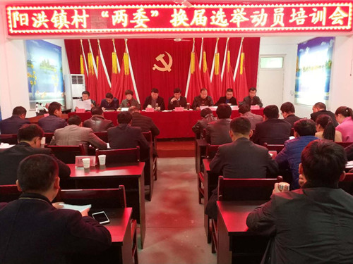 3月19日下午,阳洪镇召开村“两委”换届选举动员培训会,镇机关全体领导同志、各村党支部书记和主任等参加会议。会议从村“两委”换届选举的指导思想、目标要求、时间安排、人选条件、实施步骤、组织领导等方面对全体镇村干部进行了培训。