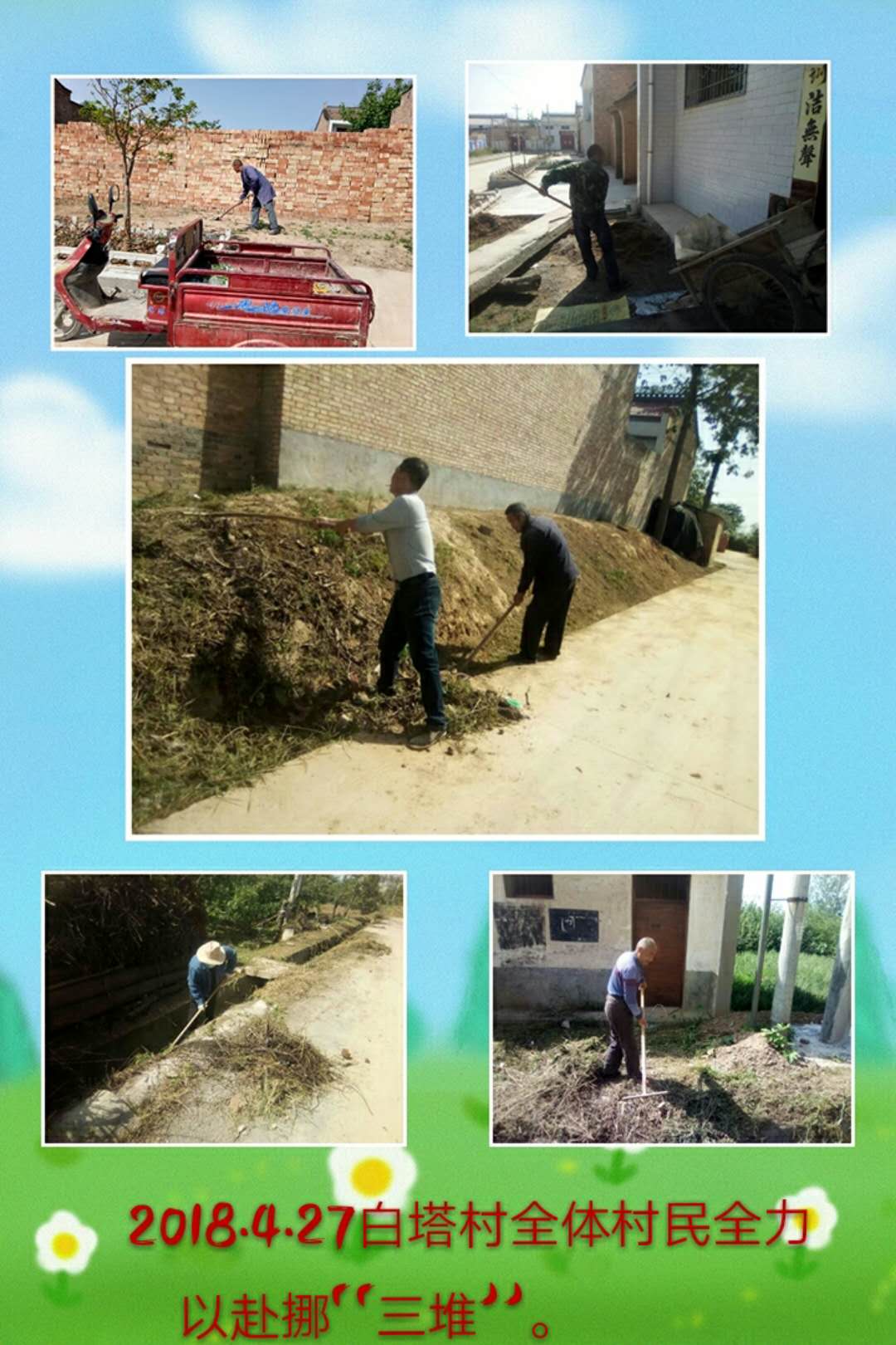 4月27日,新阳镇扎实开展环境卫生大整治,各村利用广播宣传引导群众自觉清理门前“六堆”、清理杂草,拆除门前旱厕,组织保洁员对水渠内的垃圾、秸秆等杂物进行全方位清理、清运。