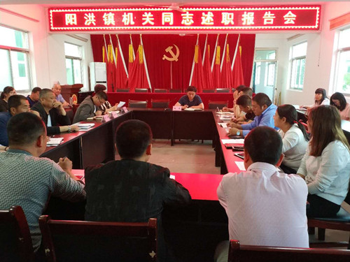 5月2日晚,阳洪镇召开机关同志述职报告会,镇机关全体领导同志参加会议。