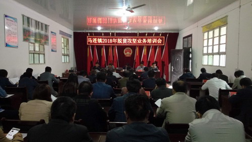 5月9日下午,马连镇召开2018年脱贫攻坚业务培训会,机关全体人员、各村书记主任、驻村工作队全体人员参加会议。