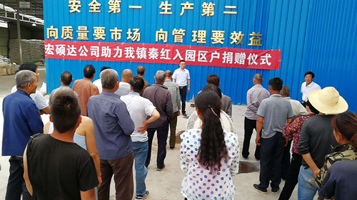 5月28日下午,阳洪镇在秦红蔬菜基地举行陕西宏硕达生物科技有限公司助力入园贫困户化肥捐赠仪式,共为41户入园贫困户发放82袋化肥,助力贫困户发展生产、脱贫致富。