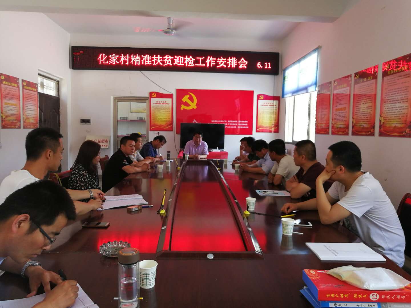 6月11日上午,新阳镇党委书记、精准扶贫分管领导在化家村专题召开迎检工作安排会。镇包片领导、包村同志、村级所有干部、第一书记、工作队所有成员参加会议。分别就该村问题整改情况、新任干部帮扶情况、2018年“八个一批”落实情况等逐一进行详细部署。