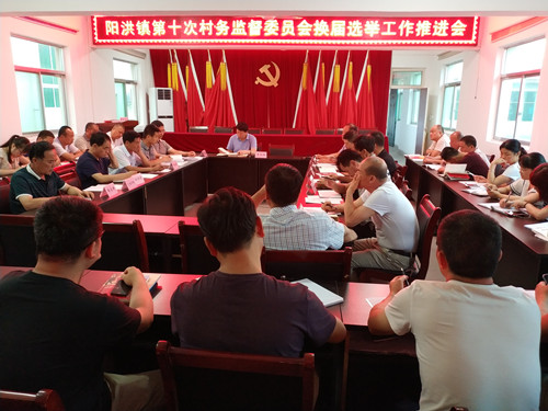 6月20日,阳洪镇召开第十次村务监督委员会换届选举工作推进会,镇机关全体领导同志、各村各支部书记参加会议。