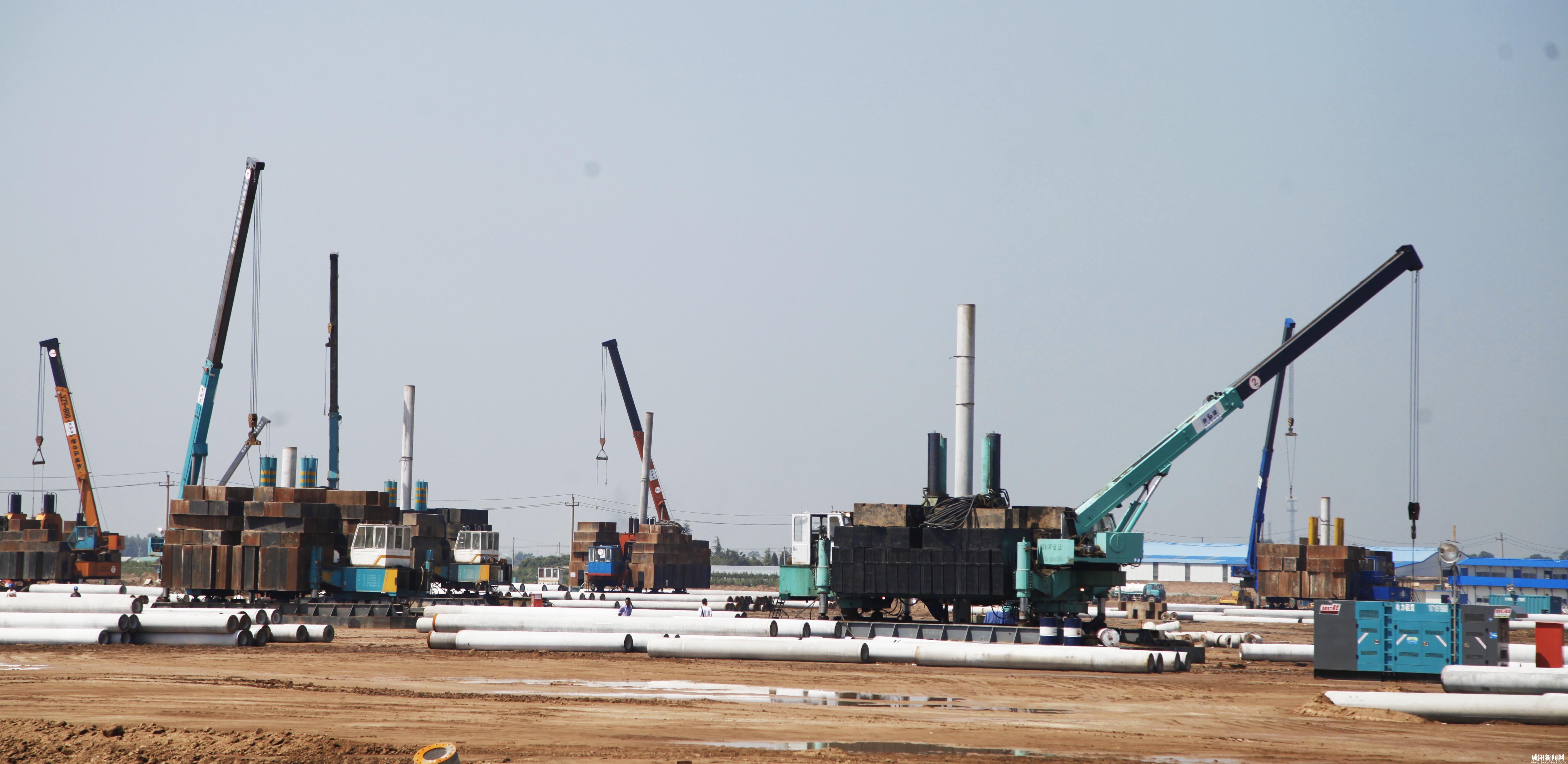 进入8月,CEC8.6代液晶面板项目建设施工工地上,百辆工程机械紧张作业,挖掘机、打桩机、重型卡车来回穿梭,一片繁忙有序的景象。(咸阳日报记者 王晓田 摄 )